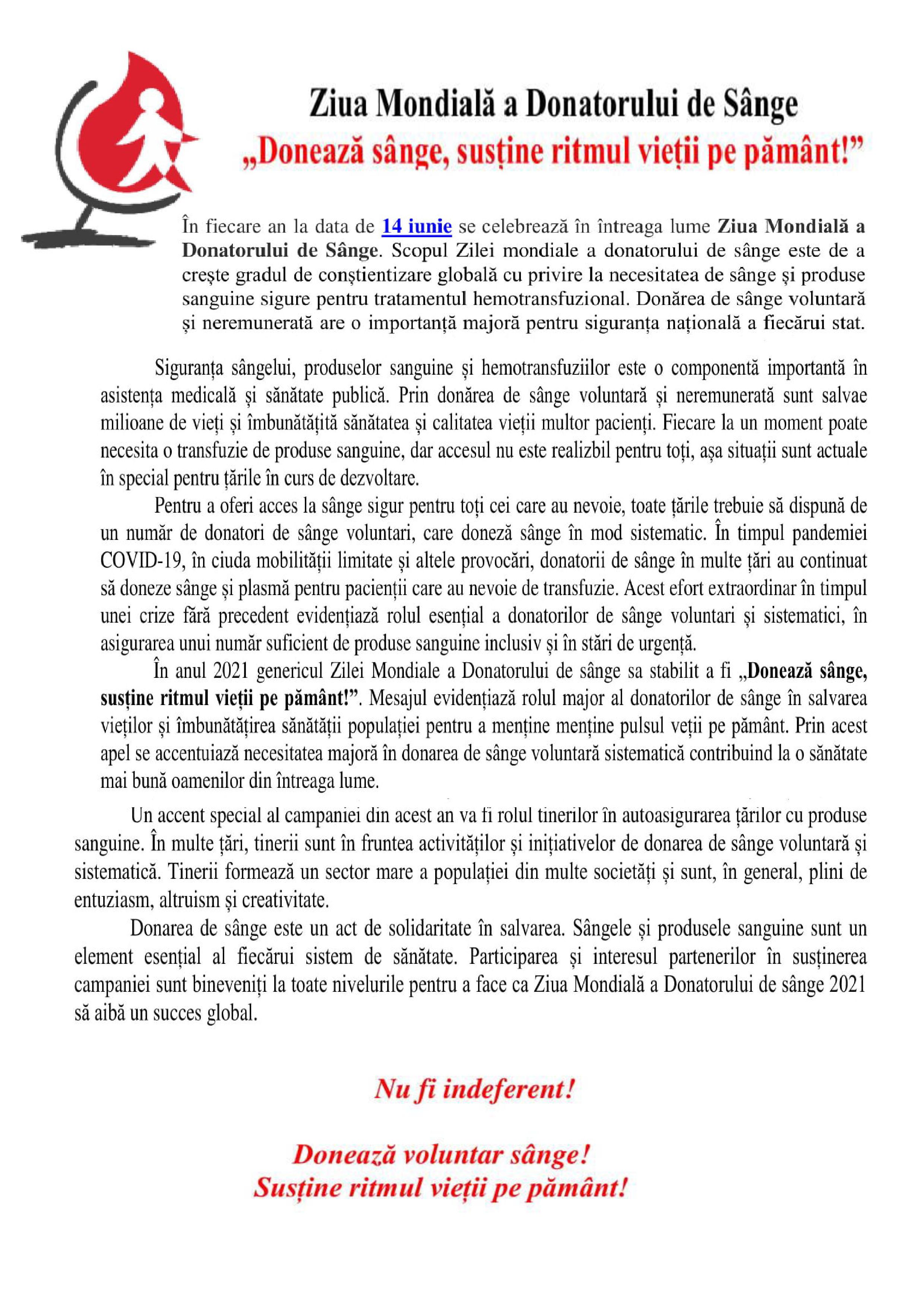Ziua Mondiala a Donatorului de Singe